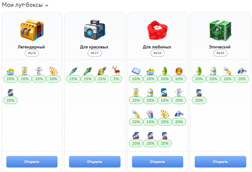 Após comprar e pagar pelo conjunto, ele aparecerá na página "Loja - Minhas Caixas de Saque". Para receber os produtos do conjunto adquirido, você precisa clicar no botão "Abrir".
