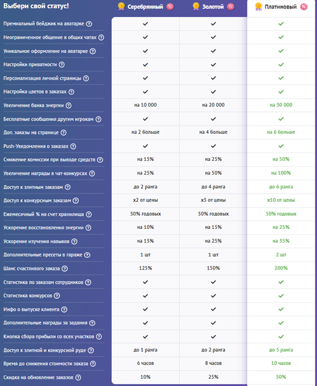 4. Доступ к самым выгодным – элитным и конкурсным заказам, а также к элитной и конкурсной руде.