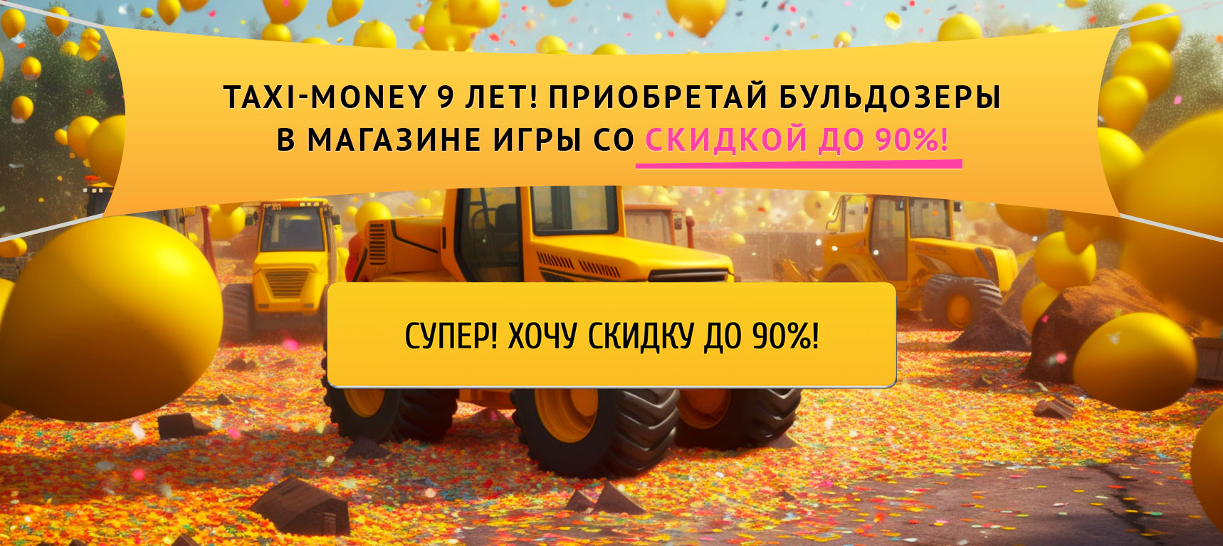 In honor of the game's 9th anniversary, we are launching an unprecedented series of giveaways! Every Friday during the "Taxi-Money 9 years!" promotion, a gorgeous prize fund of 99,999 will be given away in the game! All owners of the unique S-200 bulldozer are participating in the giveaway!