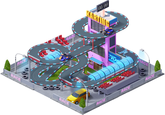 Построй здание Картинга для Таксопарка, и у тебя появится ещё один инструмент для максимального отрыва от конкурентов в конкурсе «Супер шустрая компания»! Ведь Картинг для компаний даст сотрудникам твоего Таксопарка до +300% к зачислению в конкурсе! А тебе, как владельцу здания, добавит до 8600 очков влияния в районе!