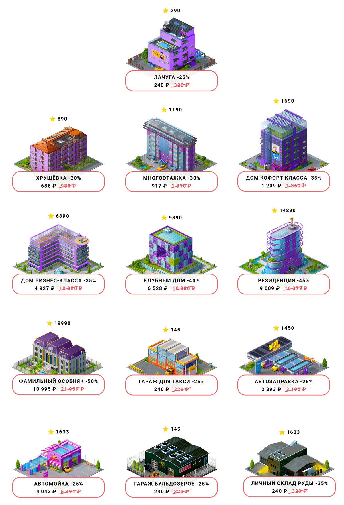 Build a car wash, gas station, garage for taxis or bulldozers, personal ore warehouse, as well as any residential building with discounts up to 10,885 !