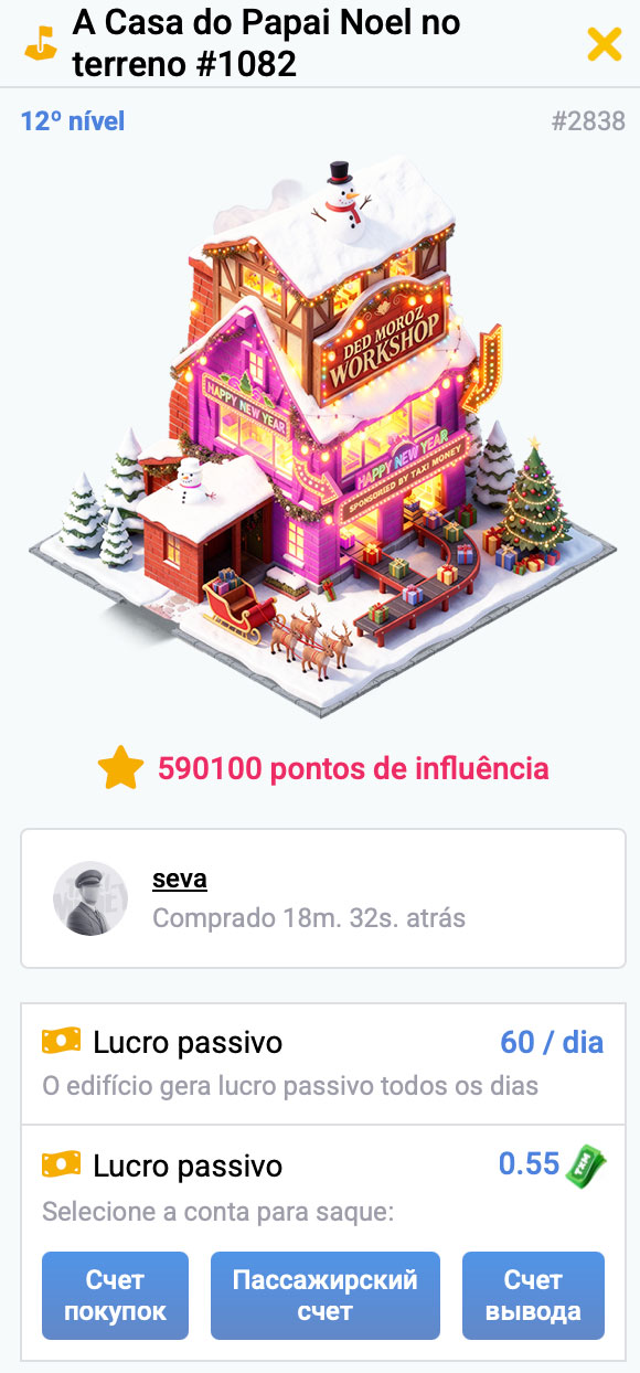 A Residência 2.0 te dará 10× mais influência do que os prédios antigos! Ao mesmo tempo, o custo de construção e melhoria da Residência 2.0 não mudou! E também é pago da Conta de Compras! Quanto maior sua influência, maior a renda passiva que você ganhará de todas as comissões e impostos no distrito do prédio! E maior sua chance de se tornar prefeito do distrito e receber benefícios fiscais adicionais!