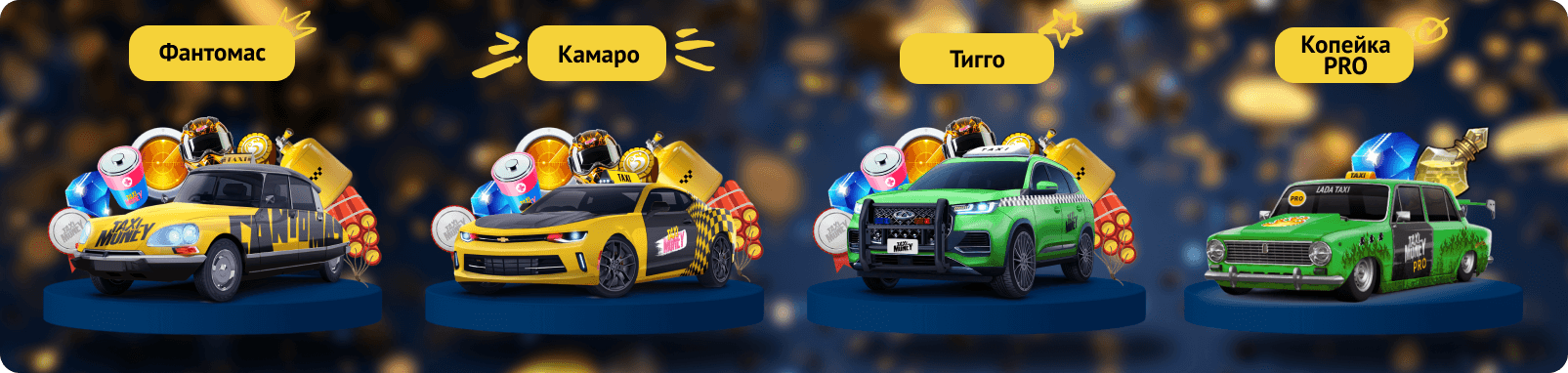 - Первое такси 1-го ранга с возможностью модификации любых бонусов под твою стратегию — настрой машину для заработка так, как тебе хочется!
